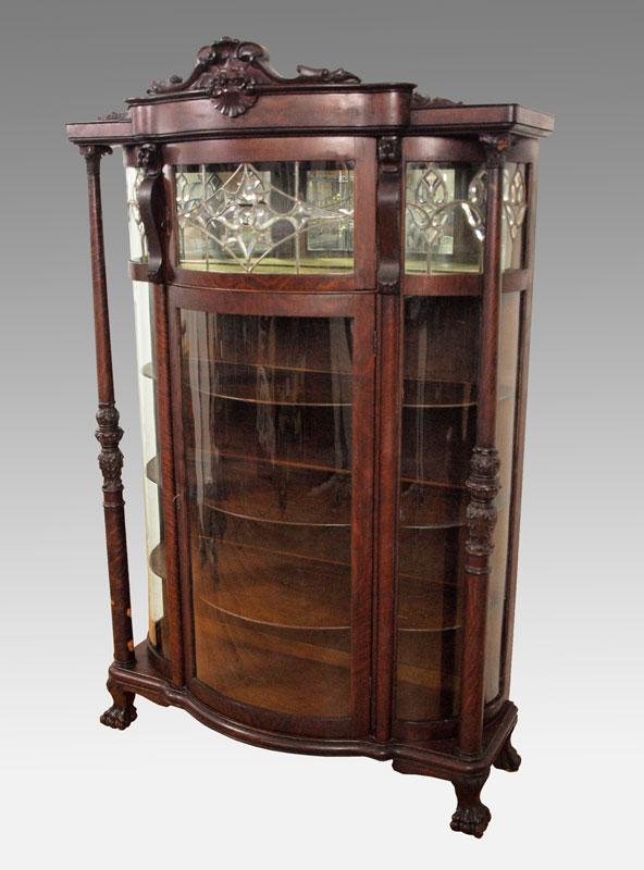 Antique Oak Curved Glass China Cabinet with Claw Feet | EBTH from ebth-com-production.imgix.net The sideboard measues 47w x 20d x 36h, while the hutch has the size of 50w x 19d x 58h. Comes with 4 adjustable shelves. Without china cabinet glass replacement, the display could appear dull, or less pleasing to the eye. Antique bow front curved glass china cabinet 3 panel 63h x42w x14d. Whether you're a fine china collector or a supper club connoisseur, we all have trinkets and special things we like to have on display. 1800's english hanging bow front corner cabinet with beaded trim accent. Amazon's choice for china cabinet glass clips. Although something may appear minimal to the eye, if china cabinet glass replacement has been neglected, it could become a much larger issue.